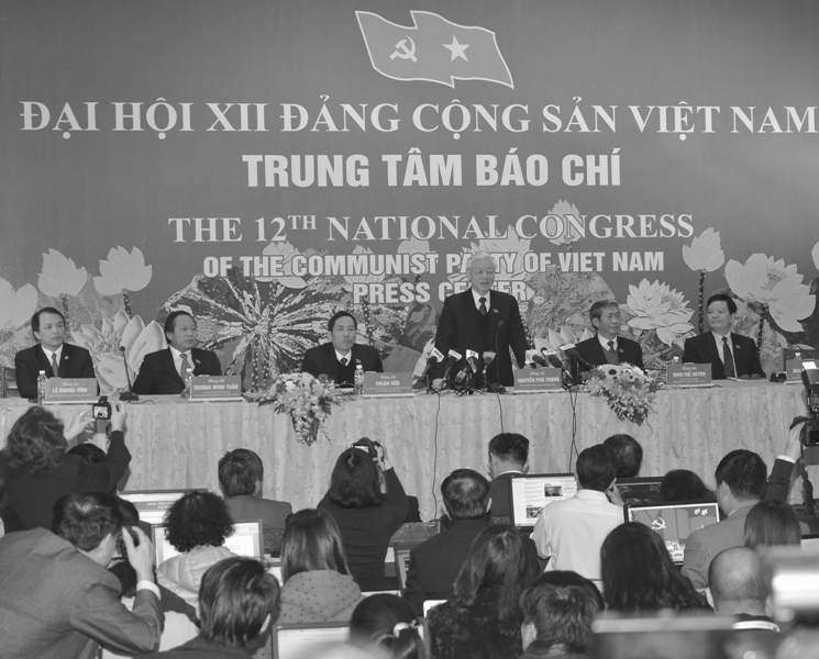 Tổng Bí thư Nguyễn Phú Trọng trả lời câu hỏi của báo chí sau phiên bế mạc Đại hội Đảng toàn quốc lần thứ XII. Ảnh: Đ.H.T