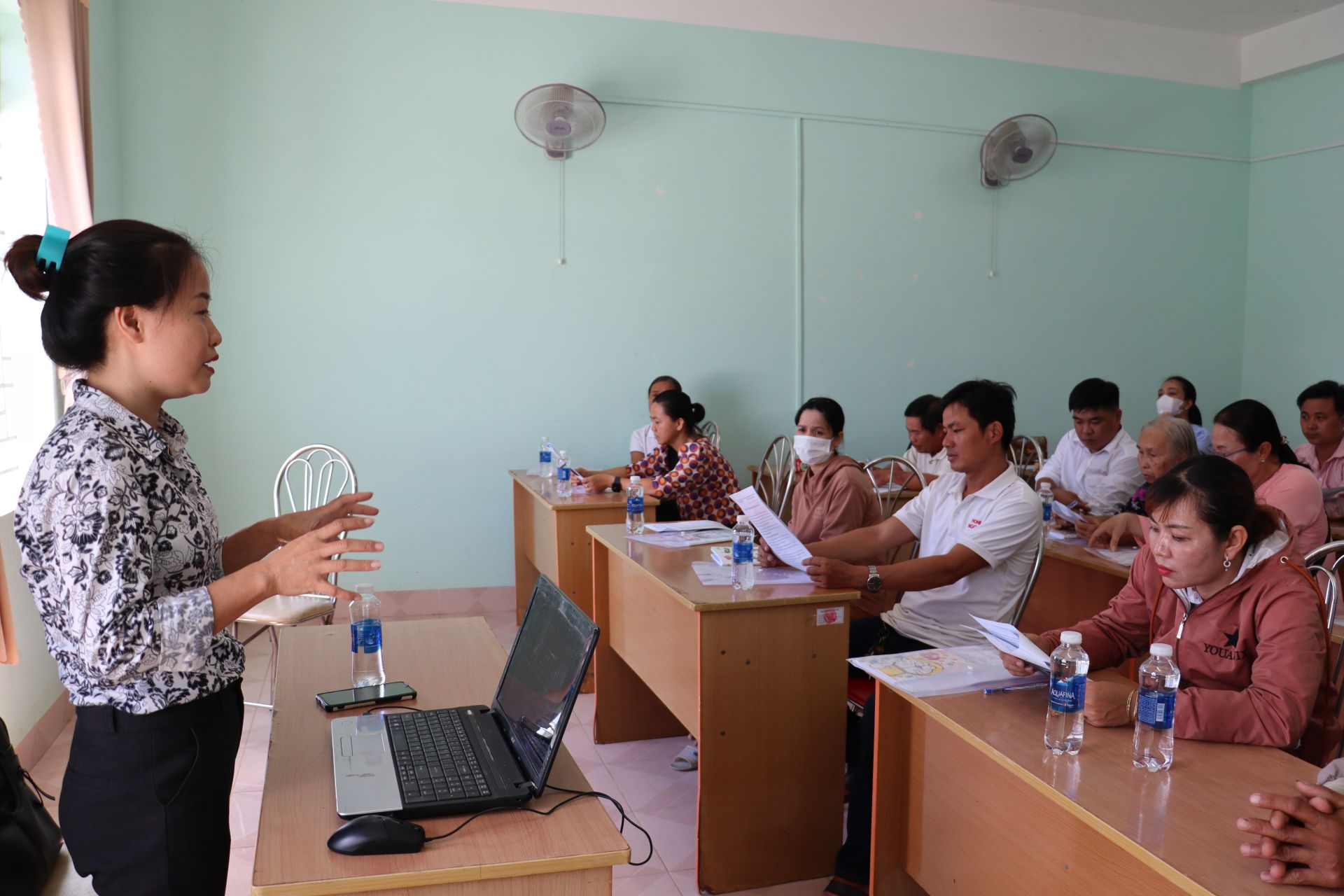 Cán bộ Trung tâm Khuyến nông, Sở Nông nghiệp và Phát triển nông thôn hướng dẫn về kỹ thuật nuôi ốc lác: cách chọn vị trí ao nuôi; thiết kế ao nuôi; diệt tạp chất và khử trùng ao nuôi; thiết kế vật bám, tạo bóng mát cho ao nuôi, kiểm tra chất lượng nước; cách lựa chọn giống ; phân biệt ốc bươu đen và ốc bươu vàng; cho ốc ăn; chữa các loại bệnh trên ốc; thu hoạch ốc thương phẩm...