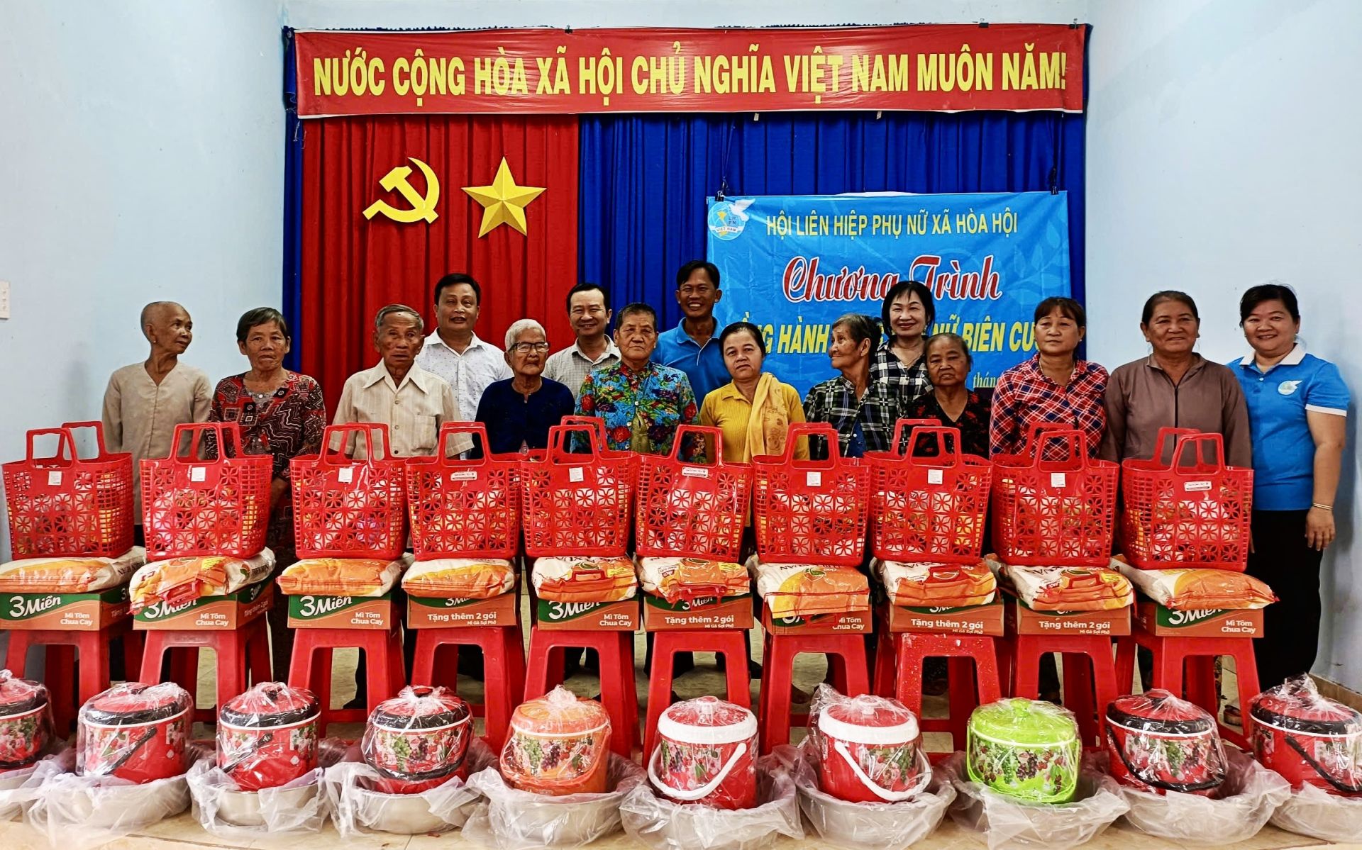 * Thực hiện chương trình “Đồng hành cùng phụ nữ biên cương”, ngày 22.9, Hội Liên hiệp Phụ nữ xã Hoà Hội, huyện Châu Thành tổ chức trao 100 phần quà cho hội viên phụ nữ có hoàn cảnh khó khăn trên địa bàn, mỗi phần quà trị giá 850.000 đồng.