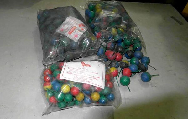 300 viên pháo banh mà Đông mang đi bán bị bắt giữ. |