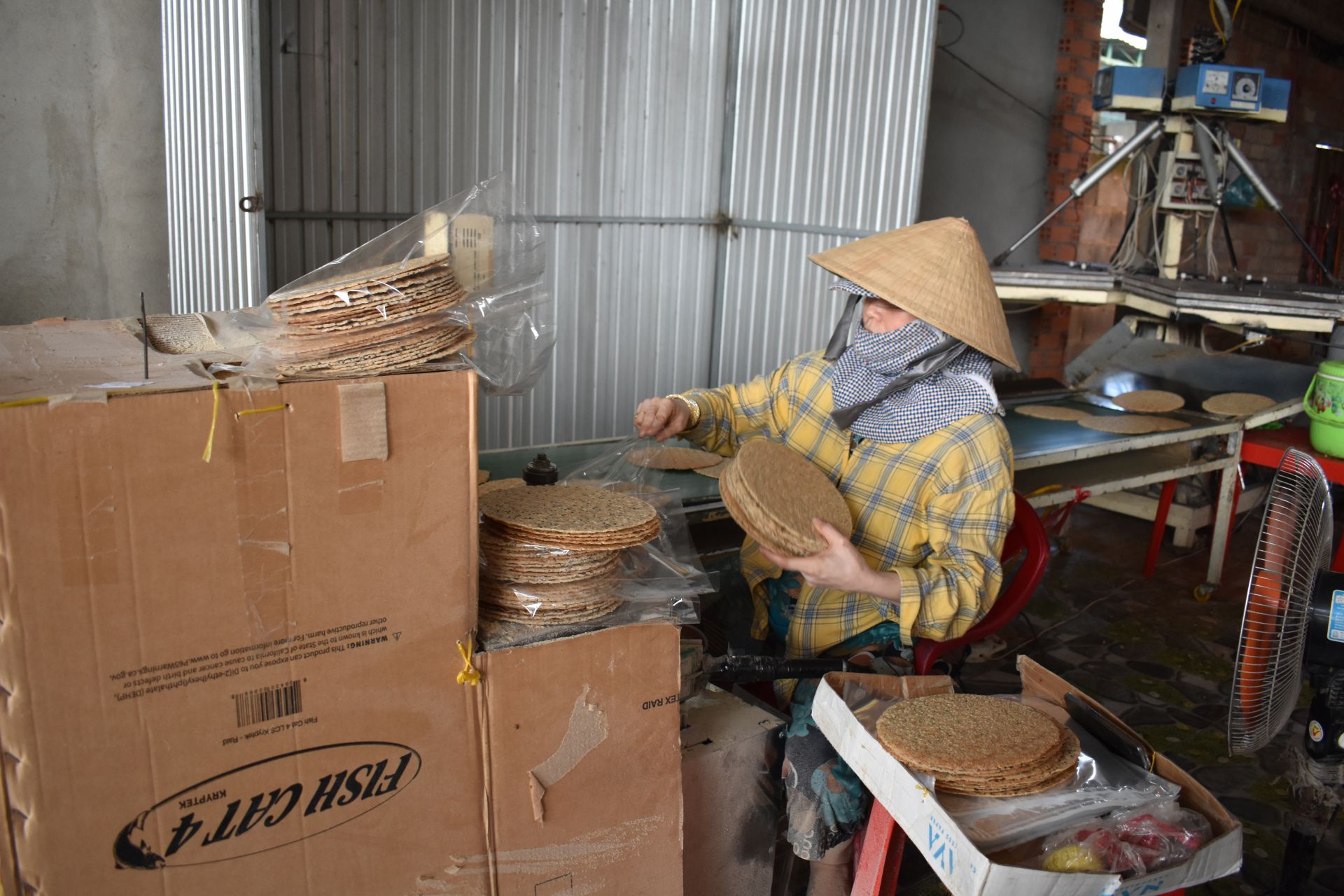 Tham gia vào việc sản xuất bánh đa dừa được hơn 3 năm, anh Nhựt chủ cơ sở bánh đa dừa Đồng Hòa, trăn trở làm thế nào để đưa sản phẩm bảo đảm an toàn vệ sinh thực phẩm, mẫu mã đẹp đến tay người tiêu dùng.