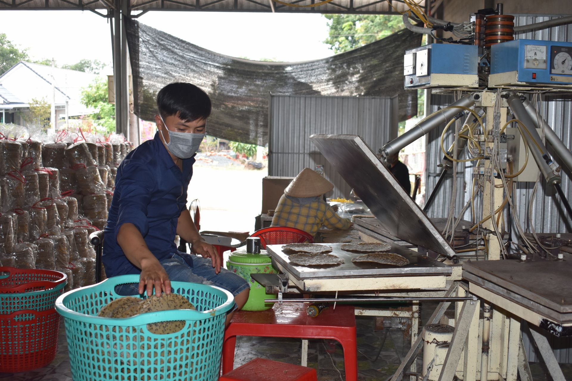 Sáng tạo máy nướng bánh đa của anh Nhựt giúp tăng năng suất sản xuất.