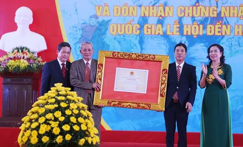 Trong ngày khai hội, lễ hội đền thờ Hai Bà Trưng (huyện Mê Linh, Hà Nội) đã chính thức đón nhận danh hiệu “Di sản văn hóa phi vật thể quốc gia”.