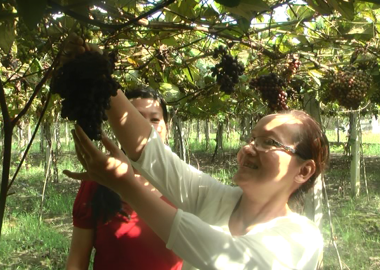 Du khách tham quan vườn nho tại xã Phan, huyện Dương Minh Châu.