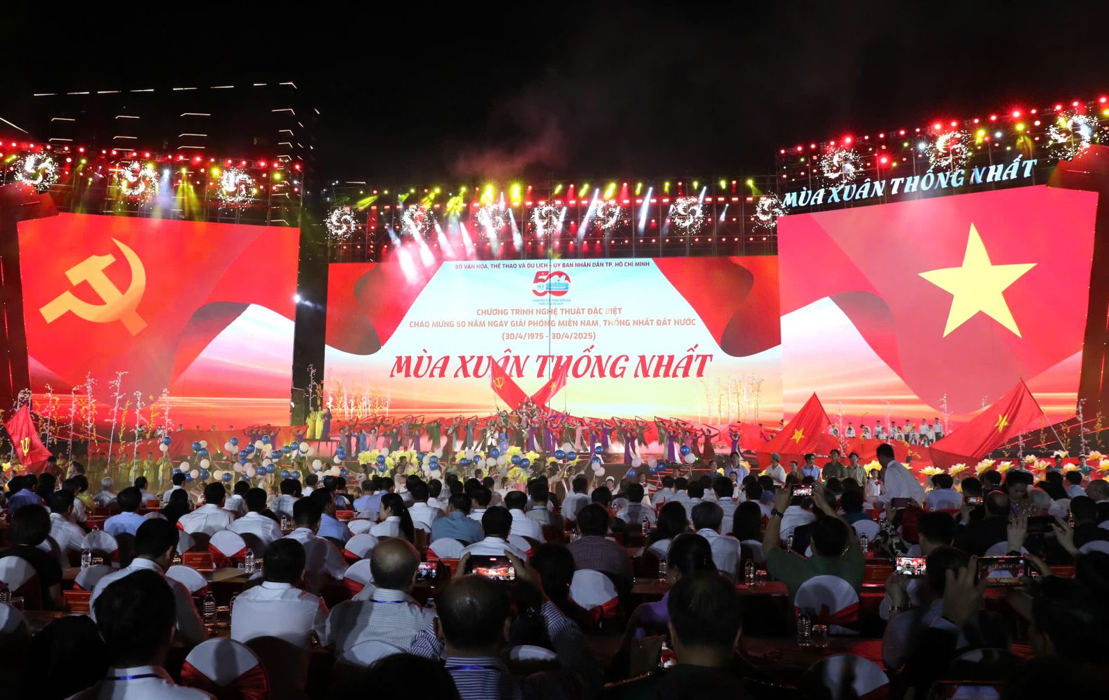 Tối 29.4, tại công viên Sáng tạo, TP. Thủ Đức, TP. HCM đã diễn ra chương trình nghệ thuật đặc biệt “Mùa xuân thống nhất” chào mừng kỷ niệm 50 năm Ngày giải phóng miền Nam, thống nhất đất nước (30.4.1975 - 30.4.2025).