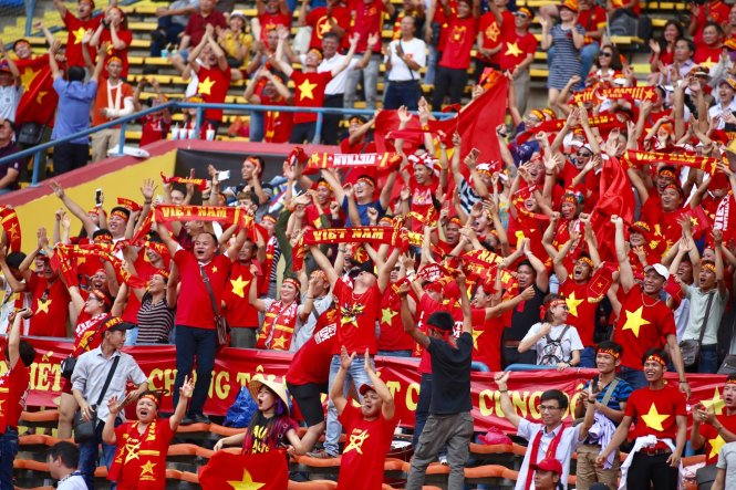 Các CĐV VN đến sân Shah Alam cổ vũ cho đội U-22 VN. Ảnh: N.K