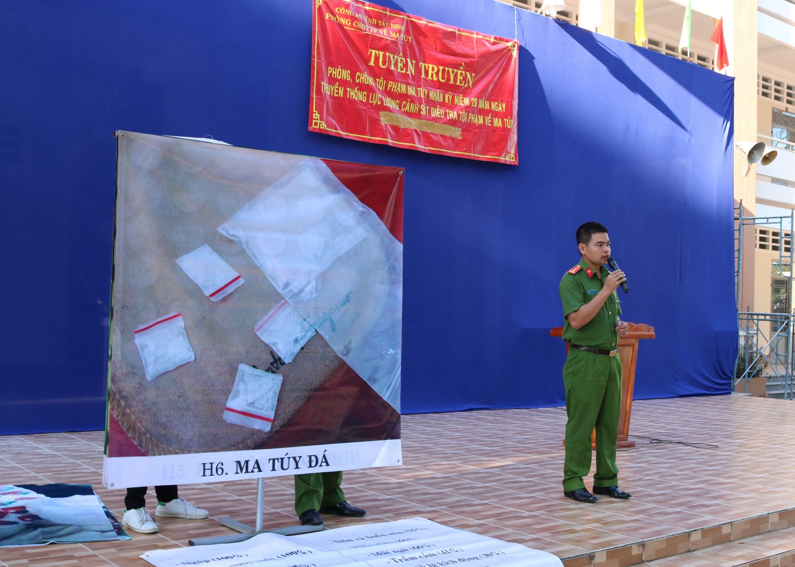 Một buổi tuyên truyền về phương thức, thủ đoạn hoạt động của tội phạm ma tuý; hậu quả, tác hại; biện pháp phòng, chống ma tuý cho các học sinh, sinh viên.
