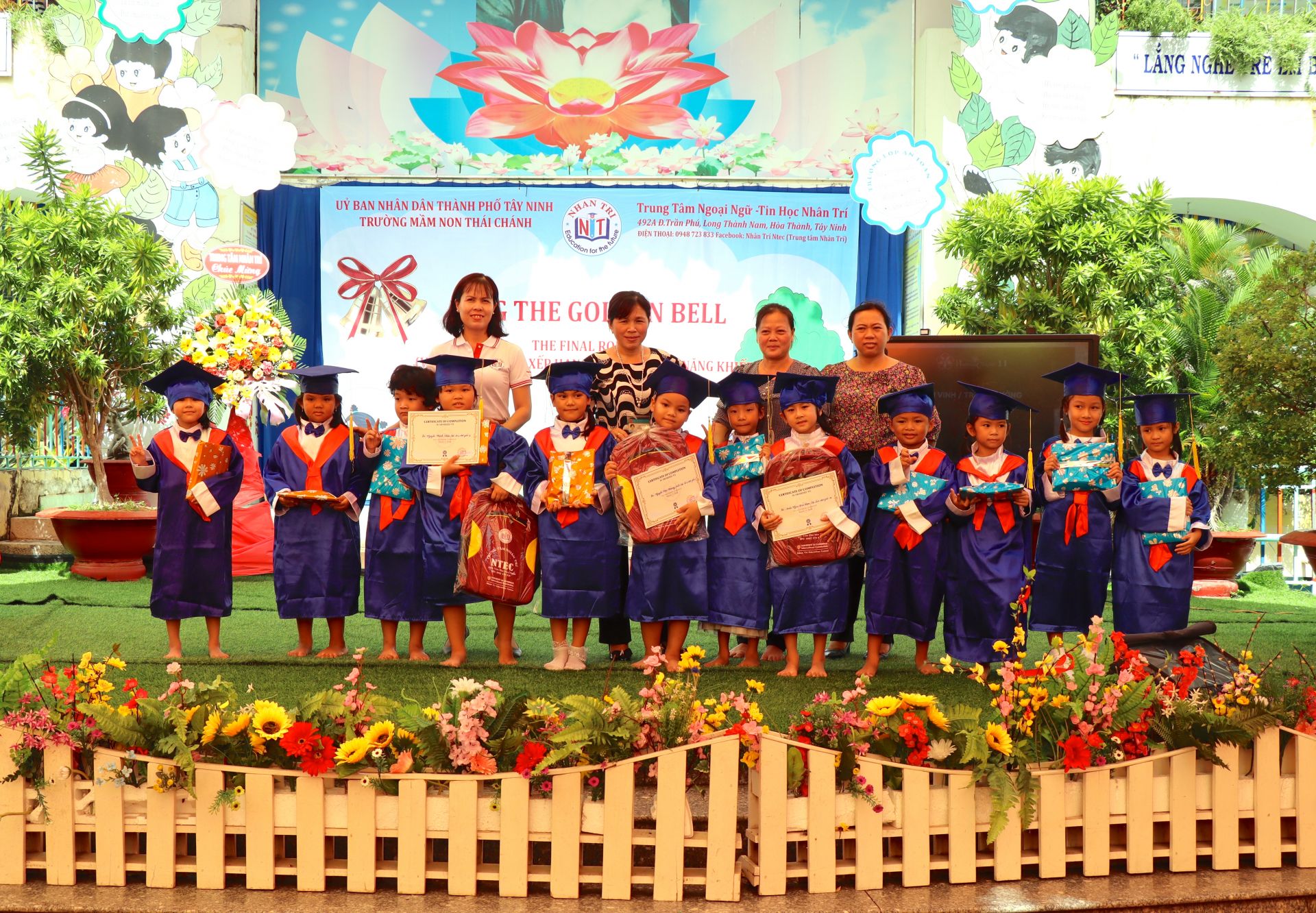 Sáng 12.5, Trường mầm non Thái Chánh (TP. Tây Ninh) phối hợp Trung tâm ngoại ngữ - tin học Nhân Trí tổ chức hội thi “Rung chuông vàng” tiếng Anh.
