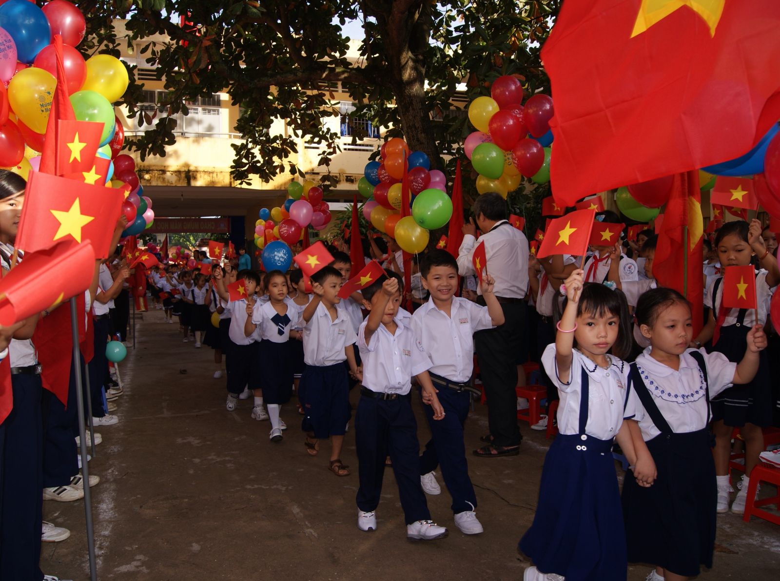 Học sinh Trường Thực nghiệm GDPT, nay là Nguyễn Thượng Hiền trong ngày khai giảng năm học mới 2010-2011. Ảnh: Ð.H.T