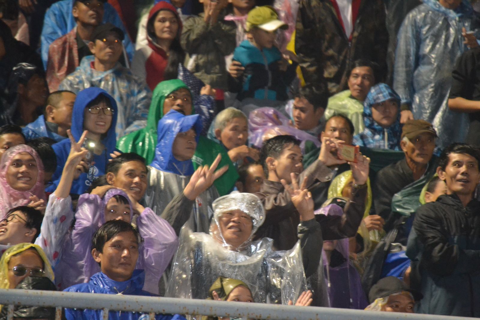 Hàng nghìn cánh tay cầm điện thoại bật sáng làm sân Tam Kỳ trong màn mưa sáng bừng lên. Không chỉ người hâm mộ xứ Quảng, nép bên khán đài C, một số CĐV đội khách TP.HCM cũng vỗ tay, chúc mừng cho đội bóng đối thủ của họ.
