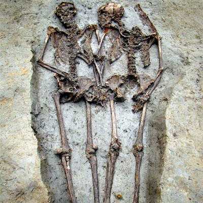 Tờ Discovery News dẫn lời ông Donato Labate – chỉ đạo cuộc khai quật thuộc cơ quan giám sát khảo cổ Emilia-Romagna, cho biết: “Chúng tôi tin rằng ban đầu hai người được chôn cất với tư thế hướng mặt vào nhau. Tuy nhiên, khi khai quật được, tư thế xương cột sống và khuôn mặt của người đàn ông bị lệch sang một phía. Điều này chắc chắn là do có tác động bên ngoài”.