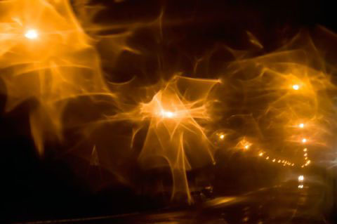 Những vệt mờ do bụi bẩn gây ra trên kính chắn gió có thể khiến ánh sáng tán sắc khi chiếu vào.