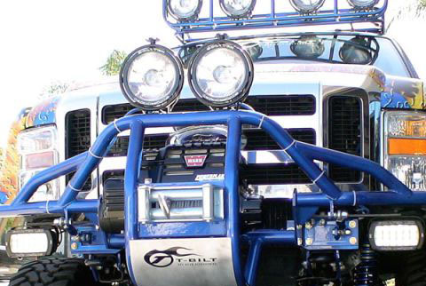 Một chiếc bán tải gắn thêm đèn trợ sáng.