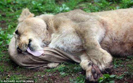Tại sở thú Paignton ở Devon, Anh người ta phát hiện ra rằng mỗi con vật yêu thích một loại mùi hương riêng. Vì thế Indu – con sư tử con trong ảnh rất thích chiếc gối có mùi bạc hà và nó thường mang theo để cho giấc ngủ ngon hơn.