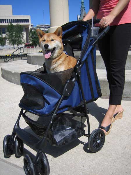 Chú chó trong ảnh được ngồi xe đẩy và đưa đi dạo hệt như những em bé. Phong cách thời trang và quý tộc này đang ngày càng thịnh hành hơn.