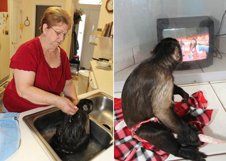 Bà Audrey Ricci ở Florida coi hai con khỉ giống như con của mình vậy. Mỗi ngày bà tắm rửa, mặc quần áo, thay tã và cho chúng ăn và thậm chí còn cho chúng xem cả những bộ phim hoạt hình thú vị.