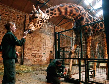 Tại vườn thú Chester ở Anh là ngôi nhà đặc biệt của những chú hươu cao cổ. Mỗi ngày chúng đều được các nhân viên chăm sóc móng chân đặc biệt để giúp chúng tránh được các bệnh về viêm khớp. Bằng cách thưởng cho chúng những món đồ ăn ưa thích các nhân viên còn lại có thể vô tư làm công việc của mình mà không cần dùng đến phương pháp gây mê.