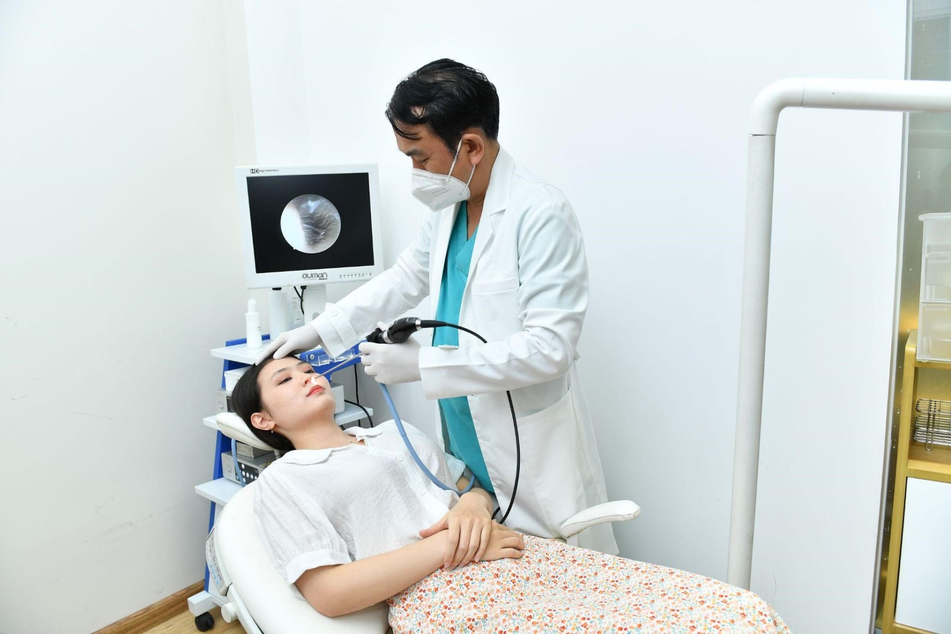 Bác sĩ Lê Viết Trí đang thực hiện nội soi mũi cho khách hàng.