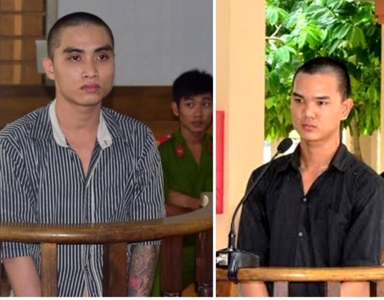Bị cáo Nguyễn Hoàng Sơn (trái) và Lê Trung Hiếu tại phiên toà xét xử. |