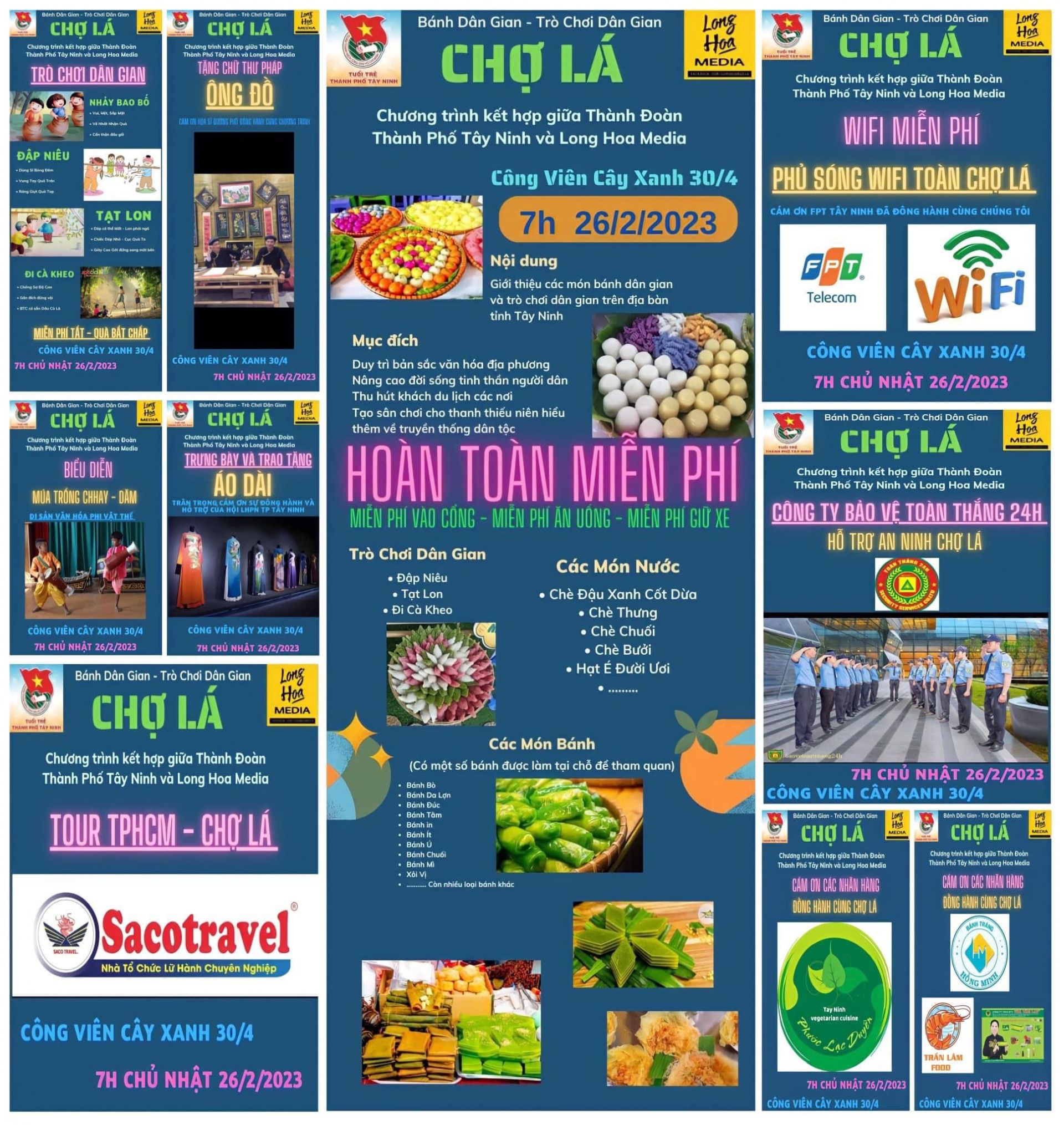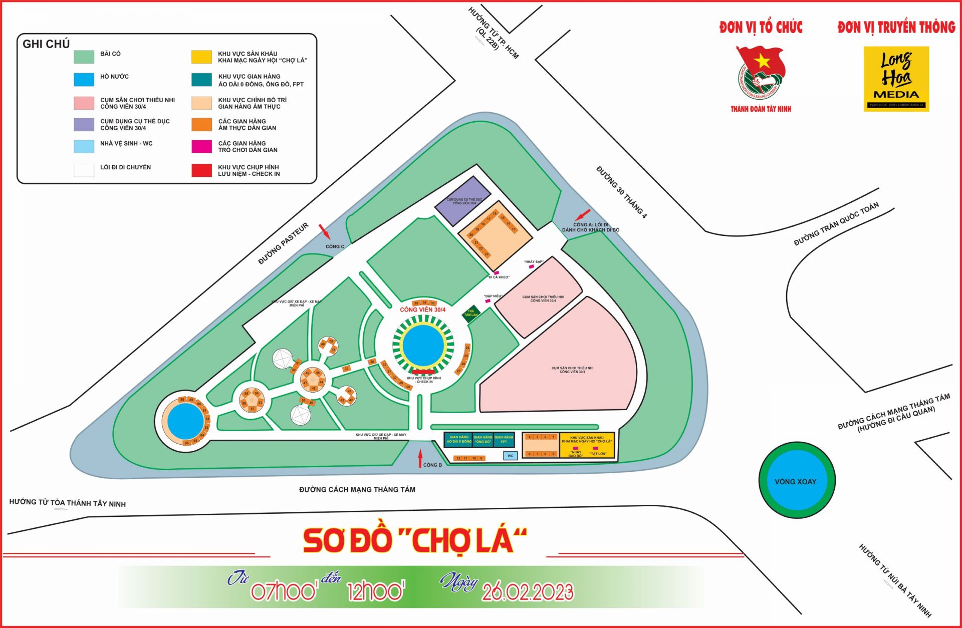 Đây là chợ lá do Thành đoàn Tây Ninh phối hợp cùng Công ty TNHH Long Hoa Tourist tổ chức tại Công viên 30.4, thành phố Tây Ninh.