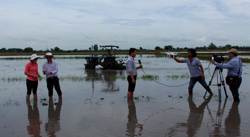| Phóng viên Đài PTTH Tây Ninh tác nghiệp tại xã An Thạnh, huyện Bến Cầu. |