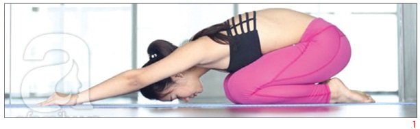 - Thở ra, đồng thời từ từ hạ hông xuống về tư thế ngồi trên gót chân, kéo thân trở về sau. Tay duỗi dài, căng ra để phần lưng được duỗi thẳng.