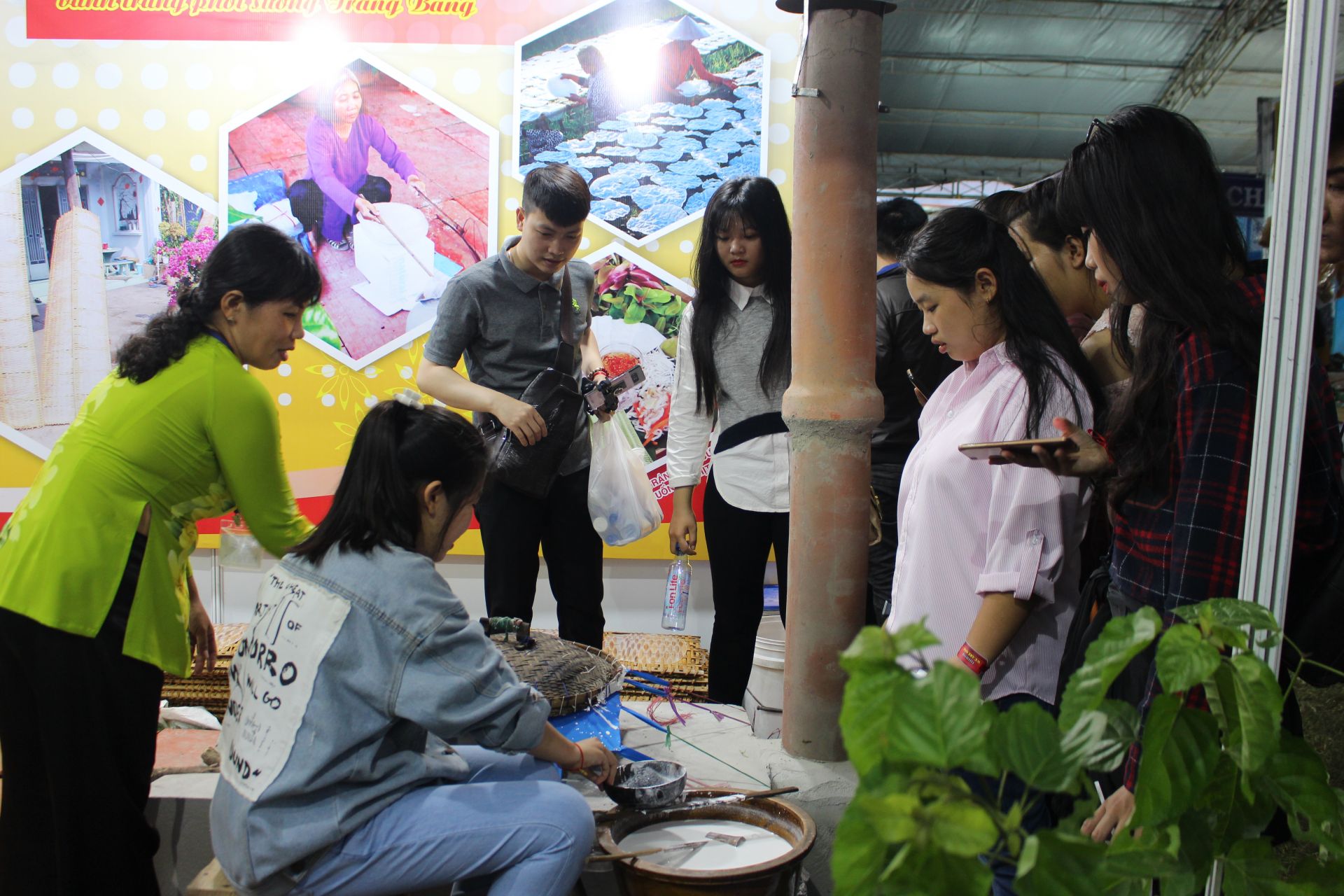 Du khách trải nghiệm làm bánh tráng tại Tuần lễ Văn hoá, du lịch nghề làm bánh tráng phơi sương Trảng Bàng lần thứ II/2018