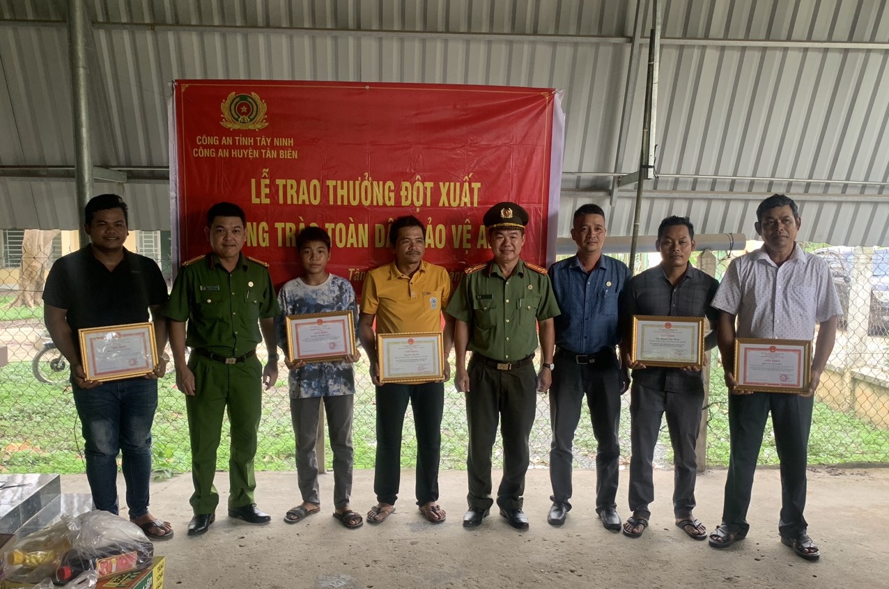 Để động viên, khuyến khích tinh thần tham gia bắt tội phạm của 4 người dân và 1 công an viên, Giám đốc Công an tỉnh và UBND huyện Tân Biên đã tặng giấy khen cho 5 cá nhân nêu trên.