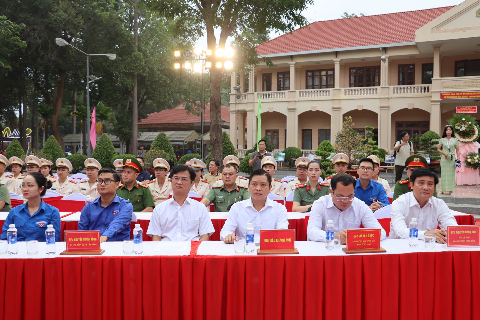 Đến dự có anh Vũ Văn Chúc- Phó trưởng Ban Tuyên giáo Trung ương Đoàn; Thiếu tướng Ngô Hoài Thu- Phó Cục trưởng Cục Công tác chính trị, Bộ Công an; ông Nguyễn Hồng Sơn- Phó Chủ tịch HĐND tỉnh cùng đại diện lãnh đạo các sở, ban, ngành, đoàn thể tỉnh Tây Ninh cùng 1.000 trại sinh là đoàn viên, thanh niên lực lượng CAND các tỉnh phía Nam.
