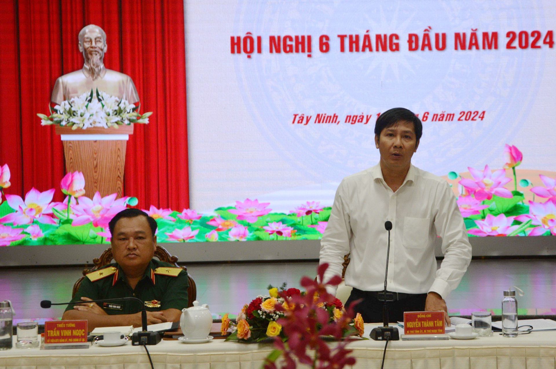 Kết luận hội nghị, Bí thư Tỉnh uỷ, Bí thư Đảng uỷ Quân sự tỉnh Nguyễn Thành Tâm yêu cầu thời gian tới, Đảng uỷ Quân sự tỉnh tiếp tục tham mưu cho Tỉnh uỷ, HĐND, UBND tỉnh lãnh đạo, chỉ đạo tổ chức hoàn thành tốt diễn tập khu vực phòng thủ huyện Châu Thành và thành phố Tây Ninh; lãnh đạo tổ chức các hoạt động tuyên truyền kỷ niệm các ngày lễ lớn, sự kiện chính trị trọng đại của Đảng, Nhà nước, quân đội và địa phương, nhất là hoạt động kỷ niệm 80 năm ngày thành lập Quân đội Nhân dân Việt Nam và 35 năm Đại hội Quốc phòng toàn dân.
