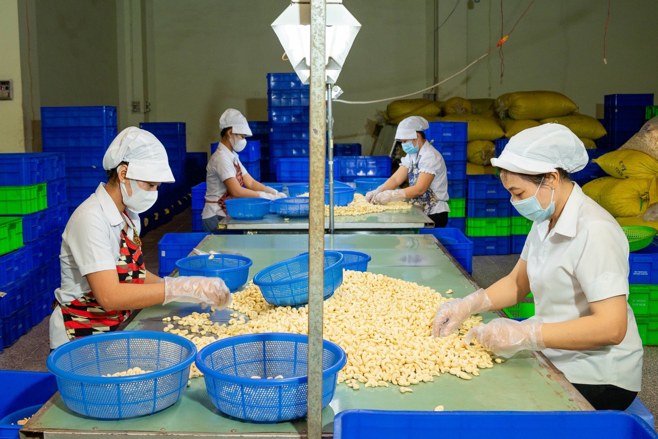 Công nhân làm việc tại một công ty chế biến hạt điều trên địa bàn huyện Dương Minh Châu.