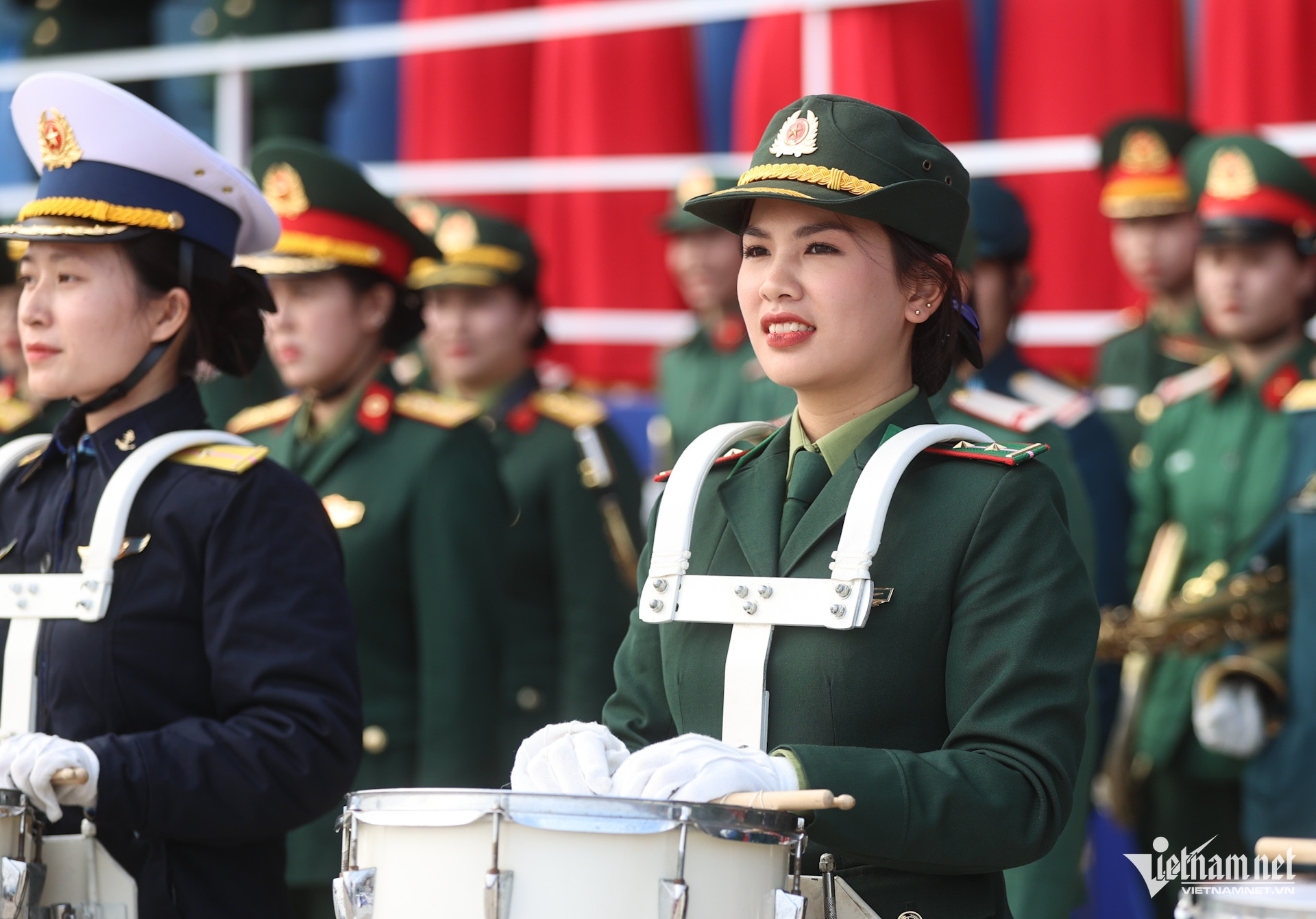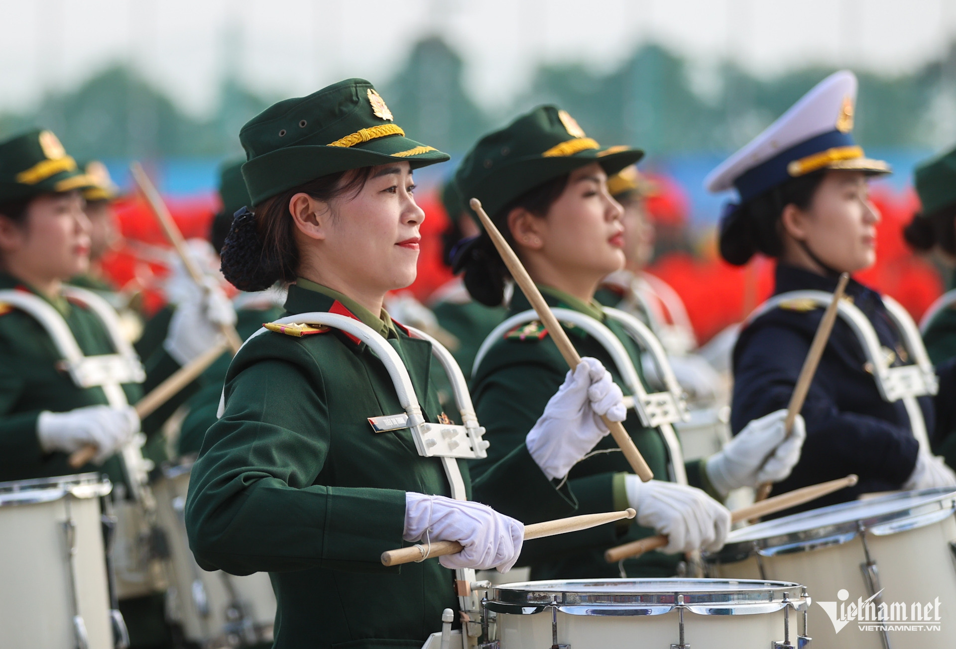 Các nữ chiến sĩ quân nhạc hợp luyện với các khối.
