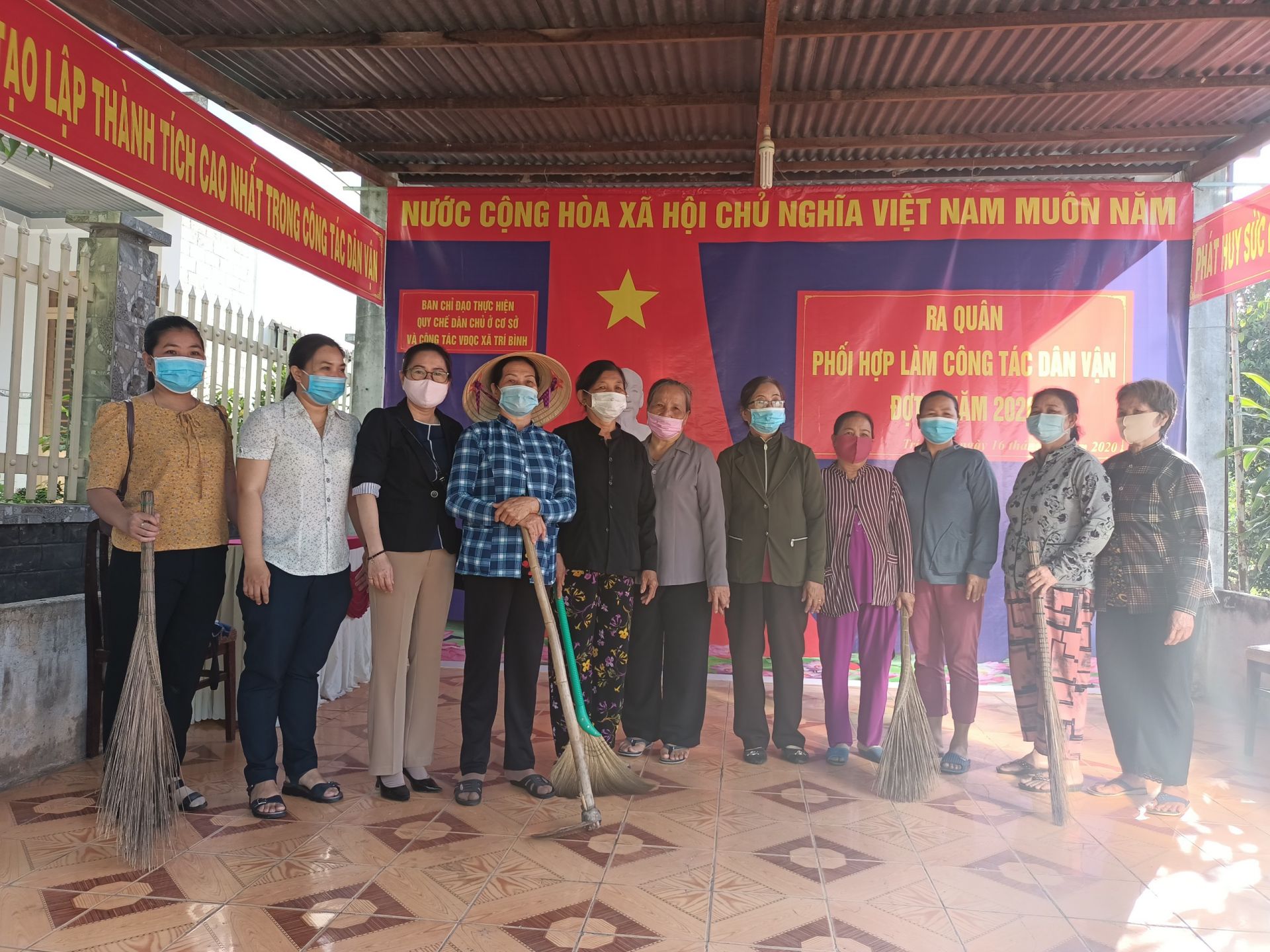 Phụ nữ xã Trí Bình ra quân làm công tác dân vận.