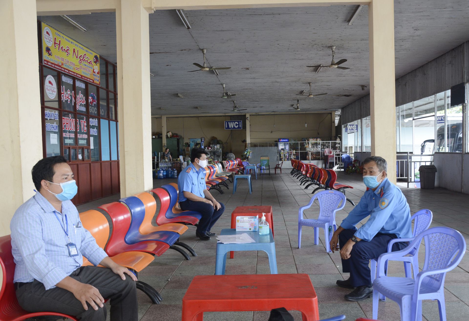 Các thành viên tổ tiếp nhận người hoàn thành cách ly từ các tỉnh, thành phố về địa phương trực tại Bến xe khách Tây Ninh.