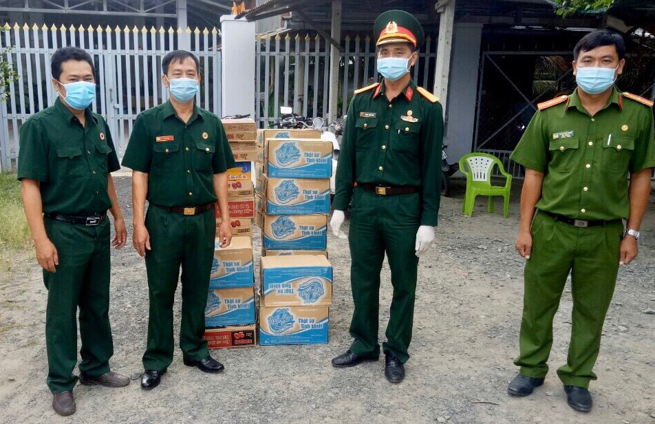 Hội CCB Tân Biên thăm, tặng quà cho lực lượng phòng chống dịch.