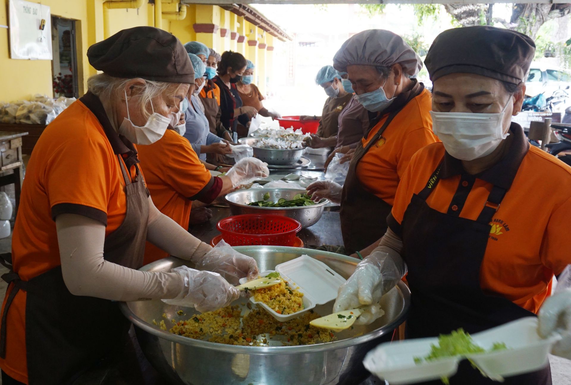 “Tôi cùng chị em nấu cơm ở chùa cũng đã lâu, phải làm việc từ 3 giờ sáng đến 11 giờ trưa mới hoàn tất từ nấu nướng, đóng hộp đến việc phát cơm, mệt thì ai cũng mệt nhưng vui lắm. Thấy bà con mừng khi được nhận cơm, tuy chỉ đủ ăn một bữa nhưng phần nào giúp những người nghèo khó bớt lo toan, tiết kiệm được chi phí. Cũng mong các mạnh thường quân, các nhà hảo tâm hỗ trợ nhiều hơn nữa vì còn nhiều mảnh đời thật sự khó khăn cần được giúp đỡ”- bếp trưởng Nguyễn Thị Thi chia sẻ.
