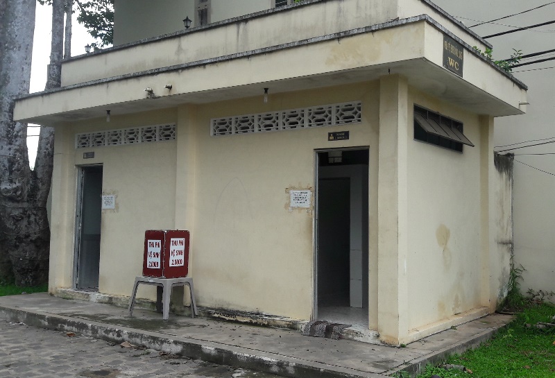 Nhà vệ sinh tại Chợ phường 3 (thành phố Tây Ninh) xây dựng từ năm 1993, đến nay cũng đã xuống cấp rất nhiều. Nhà vệ sinh được xây dựng theo kiểu cũ với các bệ ngồi xổm, cửa phòng cũ kỹ, gỉ sét. Nơi chứa nước dùng chung là bồn xi măng cao đóng nhiều rêu xanh. Một khoảng trống bên trong được một số tiểu thương dùng để cất đồ càng khiến cho nhà vệ sinh thêm chật hẹp.