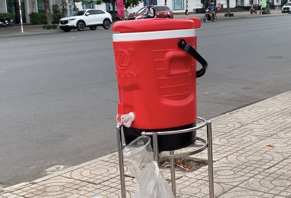 Một thùng nước miễn phí trên đường phố Tây Ninh.