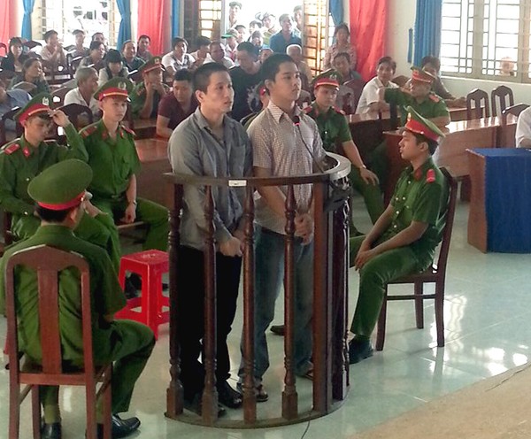 Bị cáo Thuận (áo xám) và Ánh tại phiên toà. |