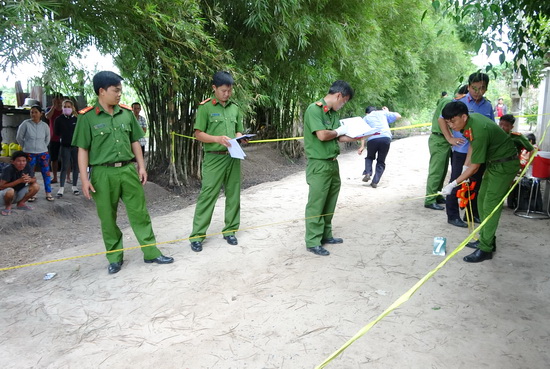 CA khám nghiệm hiện trường vụ án.
