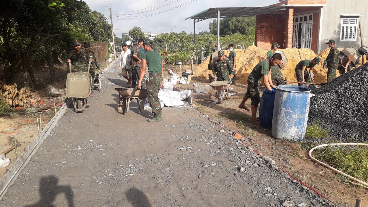 Bộ đội tham gia công tác dân vận làm đường giao thông nông thôn tại xã Phước Trạch, huyện Gò Dầu (ảnh Trọng Cầu)