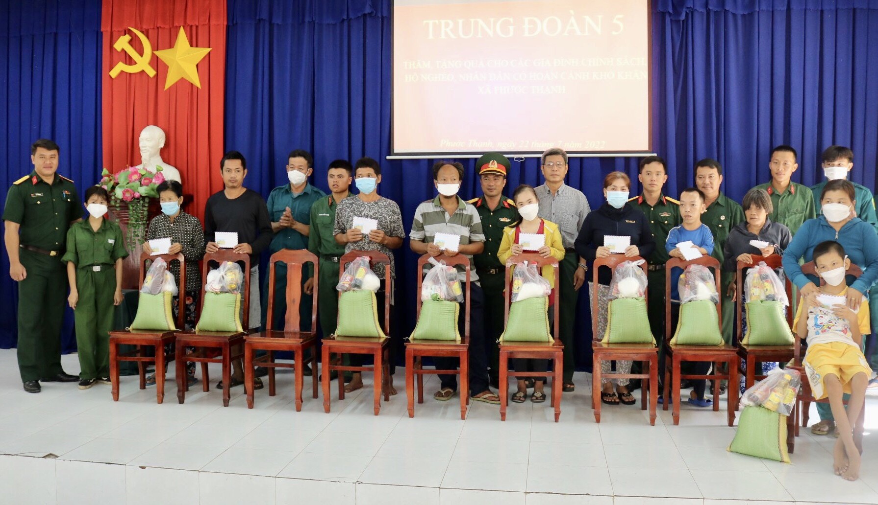 CBCS Sư đoàn 5 trao quà cho gia đình chính sách, các hoàn cảnh khó khăn và nạn nhân da cam tại xã Phước Thạnh, huyện Gò Dầu (ảnh Trọng Cầu)