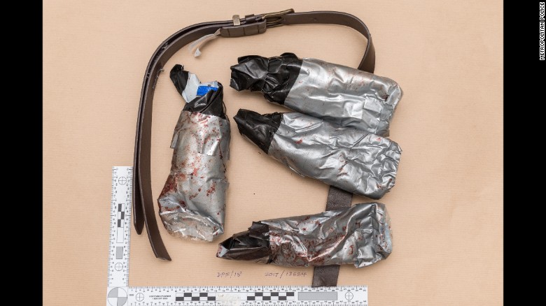 | Đai bom giả được những tên khủng bố mang theo trong vụ tấn công tại Cầu London. Ảnh: CNN |