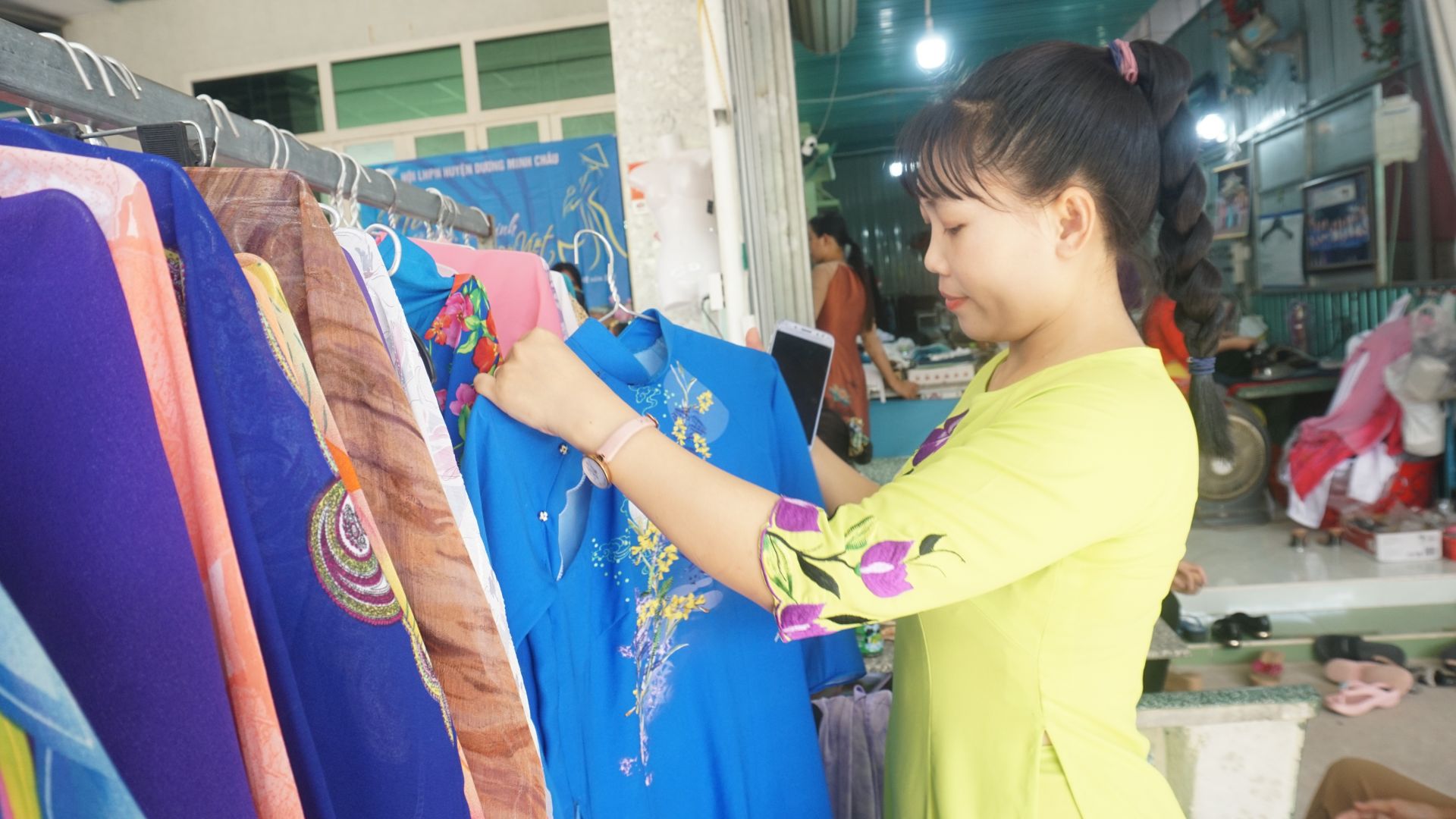Là một hội viên tích cực tham gia các hoạt động Hội, trước đây, mọi dịp lễ chị Đẩu chỉ có thể mượn áo dài mặc tạm, phải chỉnh sửa mới vừa. Nhưng từ nay, chị đã có cho mình hai bộ áo dài vừa vặn, không phải đi mượn nữa.