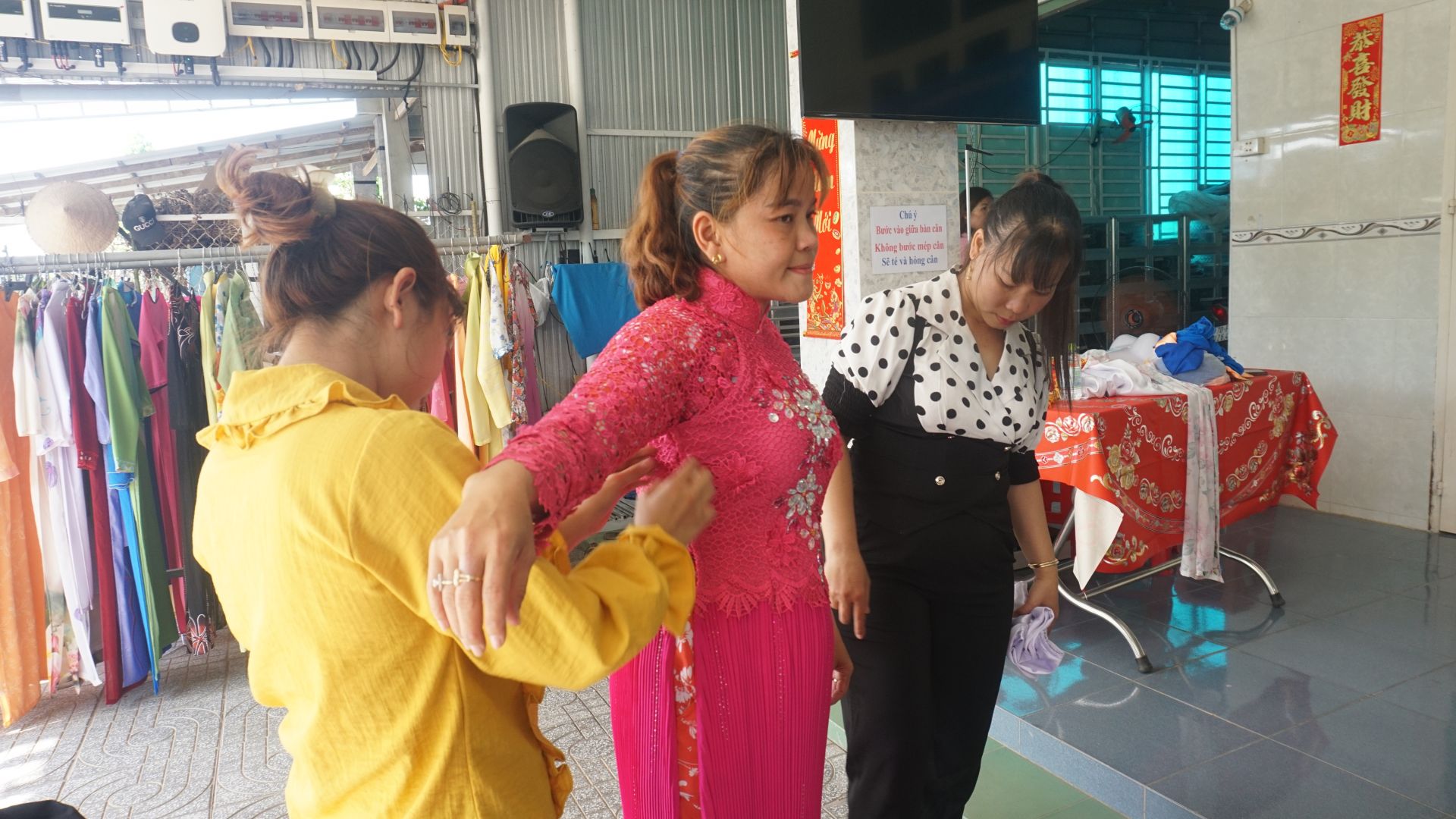 Cùng nhau ướm thử áo.