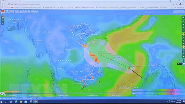 Sơ đồ đường đi của áp thấp nhiệt đới. (Ảnh: Vũ Sinh/TTXVN)