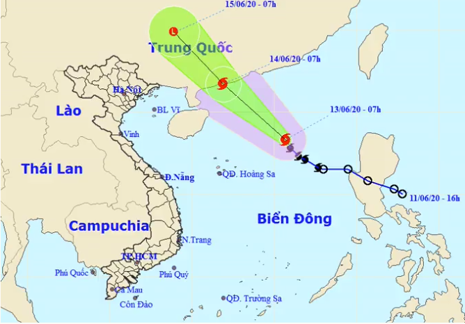 Sau một ngày vào biển Đông, rạng sáng 13/6, áp thấp nhiệt đới đã mạnh lên thành bão, cơn bão đầu tiên của năm 2020.