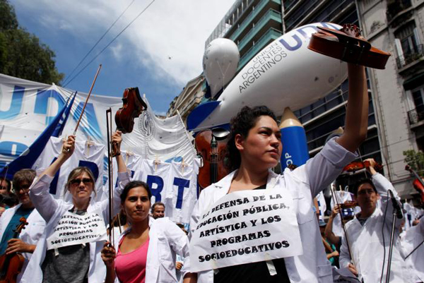 Hàng ngàn giáo viên đã xuống đường ở Buenos Aires, Argentina vào ngày 6-3-2017, trong cuộc đình công quốc gia kéo dài 2 ngày đòi tăng lương để bù lại lạm phát tăng cao trong năm ngoái. Ảnh: REUTERS
