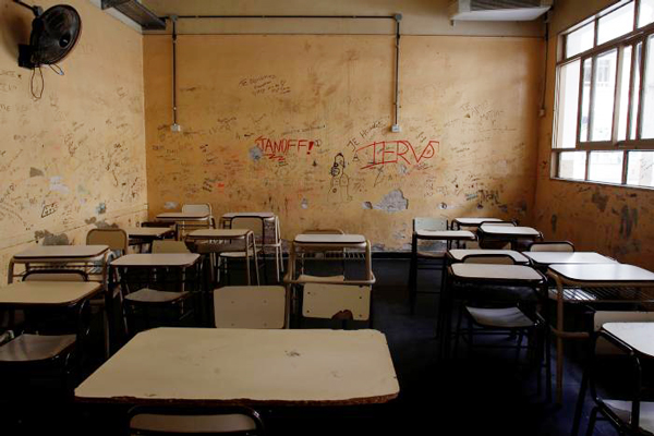 Một lớp học không có học sinh tại một trường công lập khi hàng ngàn giáo viên xuống đường, đình công đòi tăng lương ở Buenos Aires, Argentina, ngày 6-3-2017. Ảnh: REUTERS