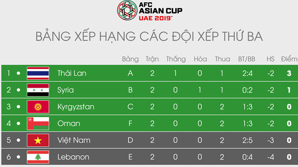 Hiện tại, Đội tuyển Việt Nam tạm xếp thứ 5 trong số 6 đội xếp thứ 3 của 6 bảng và “tình thế” vẫn rất thuận lợi.